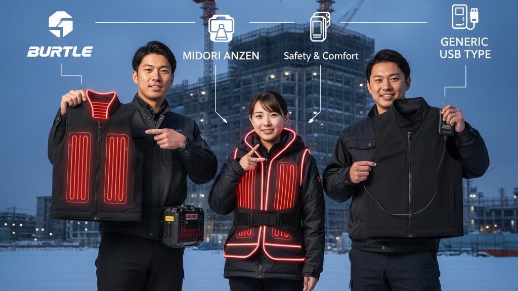 しかし、電熱ベスト選びは「どれが一番暖かいか」だけで選ぶと、現場のプロは失敗します。 この記事では、単なるおすすめ商品の羅列ではありません。現場のプロが最も重視すべき「バッテリーの互換性」という視点 から、バートル(Burtle) 、ミドリ安全 といった主要メーカーの「発熱システム」を徹底的に解剖します。