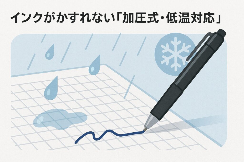 現場では「書けない」時間が一番のストレスなので、過酷な環境には加圧式が最適です。