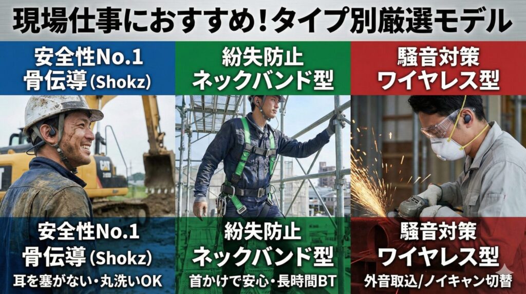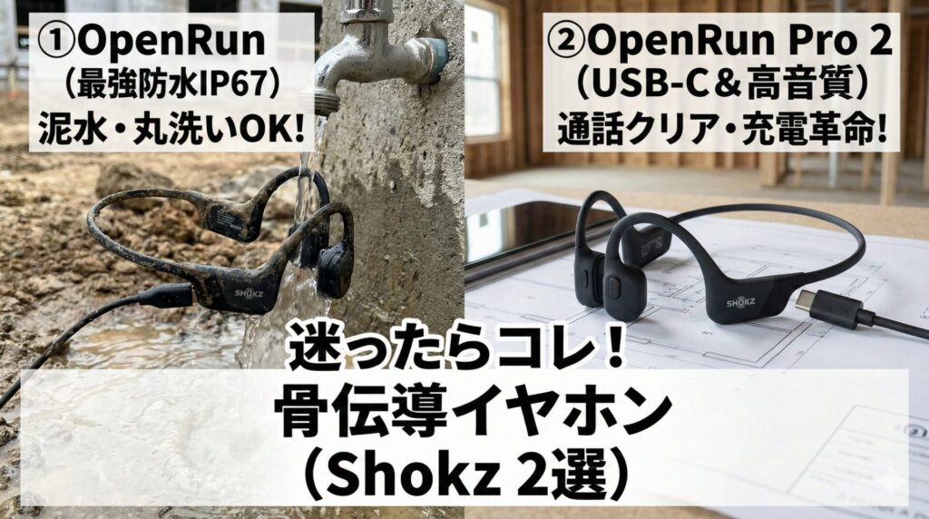 Shokzにはいくつか種類がありますが、現場仕事なら以下の2択で決まりです。
