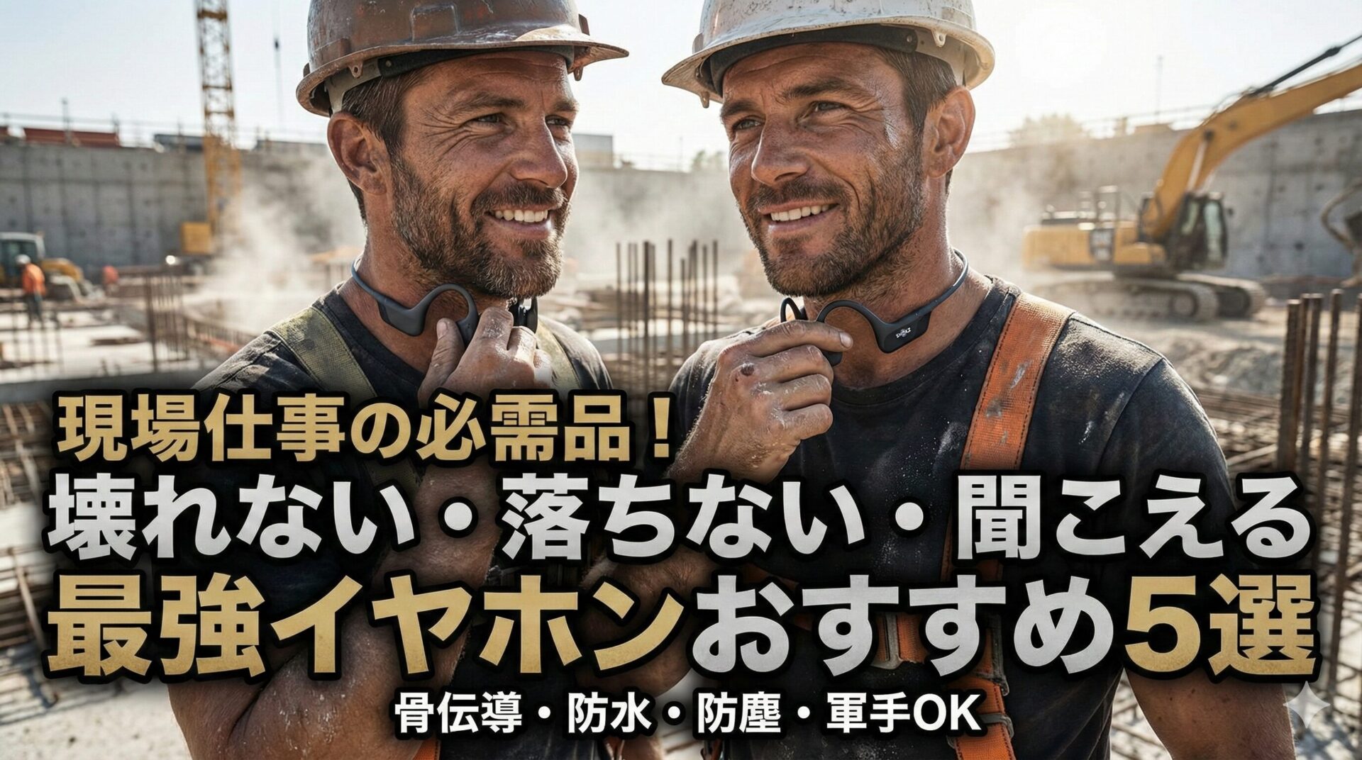 そこで今回は、数々の現場を経験してきた筆者が、「現場仕事でガチで使えるイヤホン」を厳選してご紹介します。泥や雨に負けない防水性能、軍手のままでも操作できる使い勝手、そして何より「安全に」使える相棒を一緒に見つけましょう。