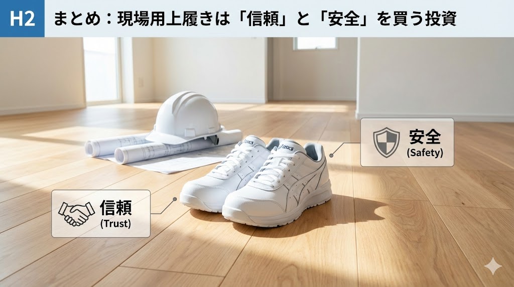 まとめ:現場用上履きは「信頼」と「安全」を買う投資