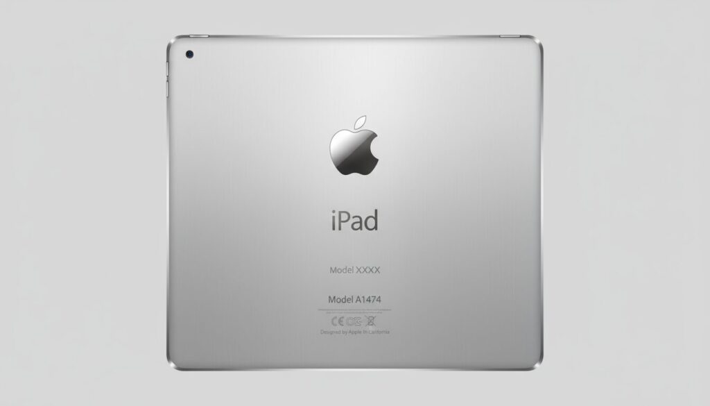 「iPad」というロゴの下に、小さな文字で「Model AXXXX」(Aと4桁の数字)が刻印されています。