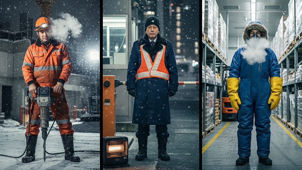 例えば、常に動き回り汗をかく「建設現場」 と、動きが少なく長時間の待機が求められる「警備業務」 、そして-60℃という特殊な極寒環境の「冷凍庫作業」 では、必要とされる防寒着の機能は根本的に異なります。
